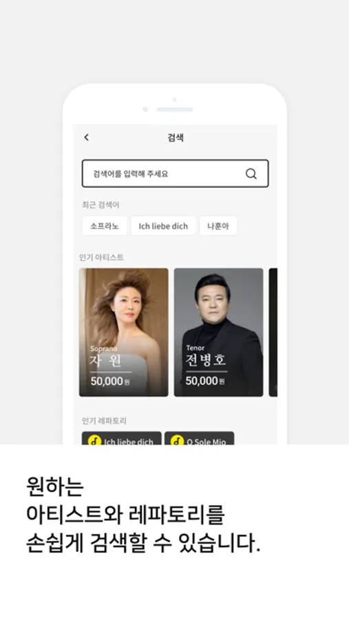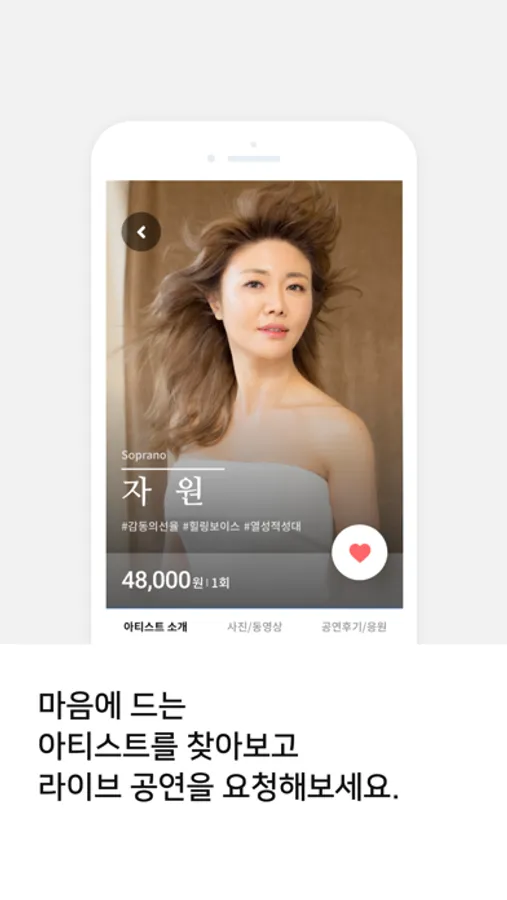 - 각 아티스트들이 준비한 레파토리 중에서 원하는 레파토리를 선택해 공연을 요청할 수 있습니다.