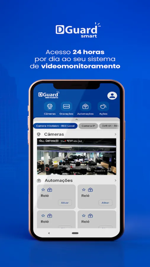 Visualize suas câmeras conectadas aos servidores D-Guard, Integra e SegVídeo de qualquer lugar através do seu dispositivo móvel.
