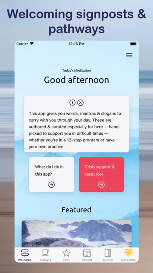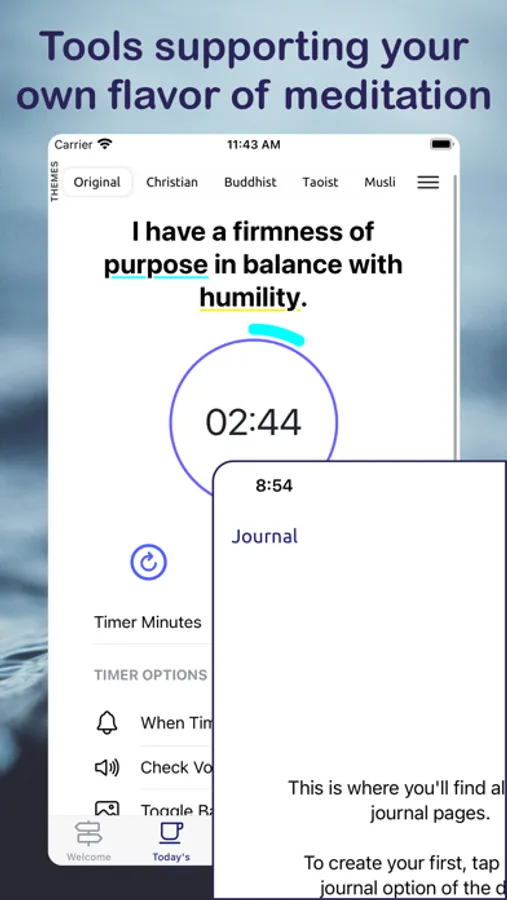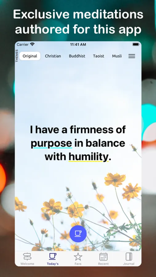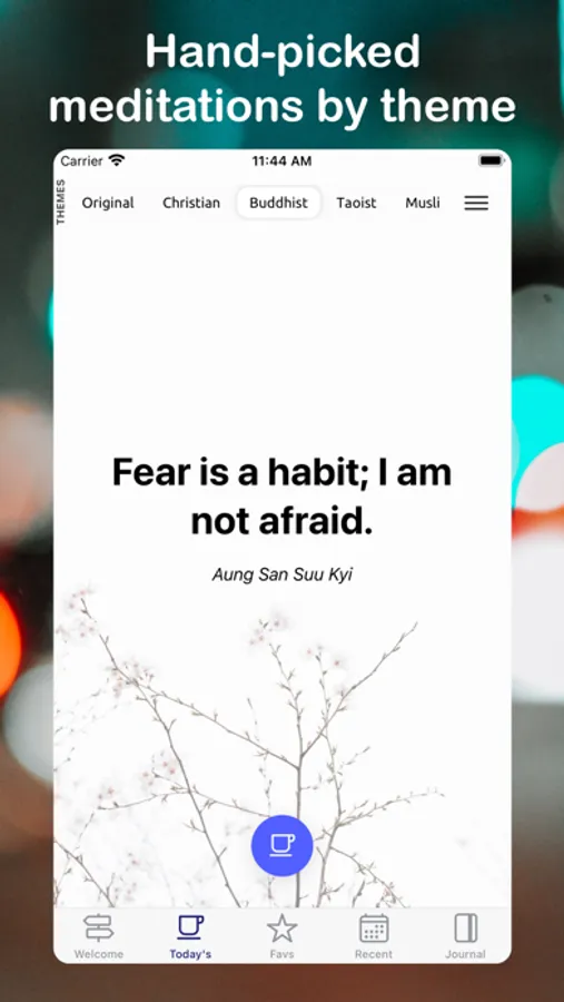 All original meditations are free. Subscribe to "TM Plus" to unlock all faith-based and themes including Activism as Self-care, and Christian, Buddhist, Taoist, Jewish, and Muslim. And to open blank pages in the journal, with unlimited journal pages.