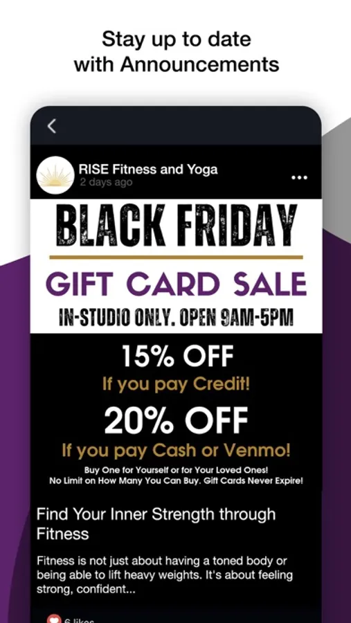 RISE Fitness and Yoga Studio is a premier boutique wellness studio located in Collegeville, Pennsylvania offering both In Person and Virtual Group Fitness and Yoga classes, Personal Training sessions, Breath Work and Meditation Workshops, and more! Seamlessly book classes and sessions right through our app. Click the link in our app to be taken directly to our website to shop the latest trends in Fitness Apparel and handmade Aromatherapy and Skincare Products!
