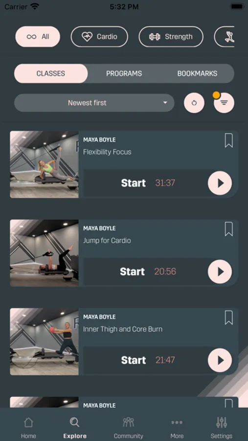 Our high-energy, endorphin-rich and ever-growing library of 100+ classes are designed to help you achieve your fitness goals, from building up endurance, improving flexibility or targeting muscle tone.