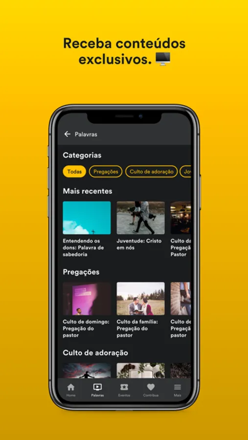 - Siga a agenda e fique por dentro de tudo que acontece na igreja, inscreva-se em eventos e tenha seus ingressos sempre com você.