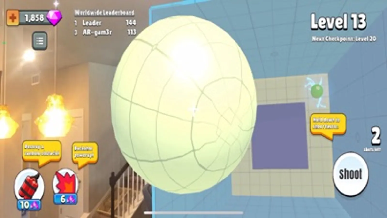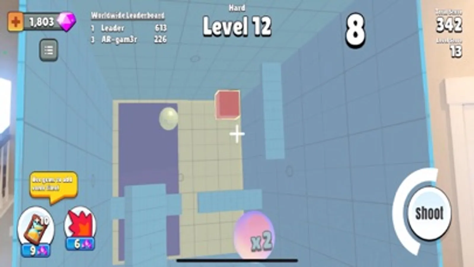 Use the magic of augmented reality to improve your shots. You can move the phone to get a better angle on the goal, and with augmented reality and ARKit, the game board appears to float in front of you like it's really there.