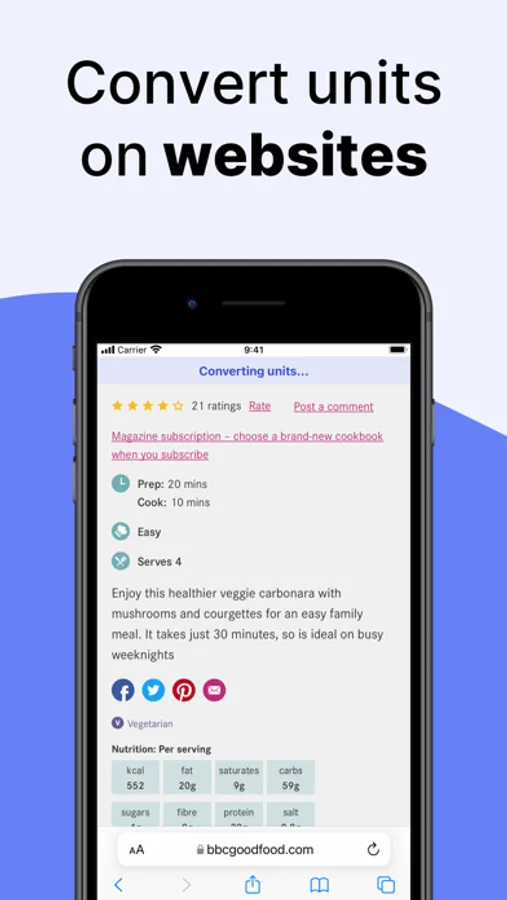 Convert units on any website using our “Convert Units via Uniter” extension for Safari.