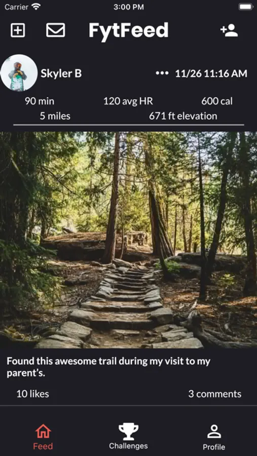 4) FytFeed is for Activity. Keep your Content focused on being active and things that help you continue to be active. Do not create Content focused on other events or opinions. Your activities can automatically upload to the feed from your favorite activity trackers. FytFeed can integrate with HealthKit to import your activity and heart rate data to the feed.