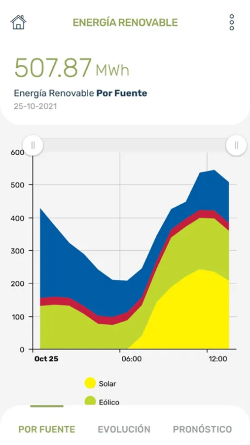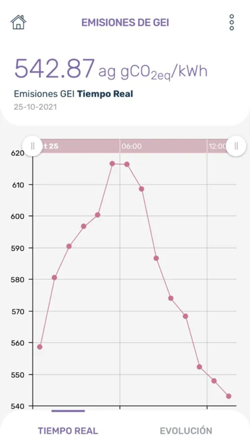 Adicionalmente, la aplicación te proporciona en tiempo real una estimación de las emisiones de gases efecto invernadero del sistema eléctrico. Los valores se presentan para períodos horarios y te permiten conocer las horas en que la energía generada es más limpia.