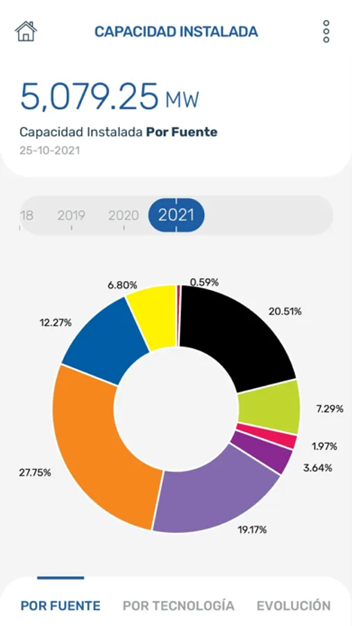 La información proporcionada por la aplicación es actualizada con los datos enviados por el Organismo Coordinador, quien como operador del sistema posee en todo momento los datos más actualizados del sistema eléctrico. De esta forma podrás manejar al mismo tiempo que el OC información sobre los siguientes temas: