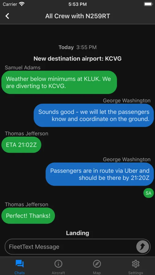 Send messages from a group of ground users or as an individual; all members of your dispatch crew will remain up to date.