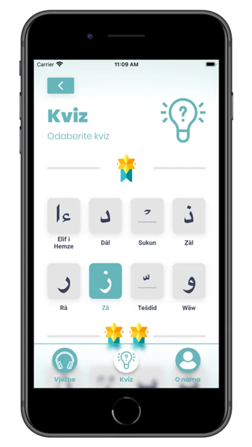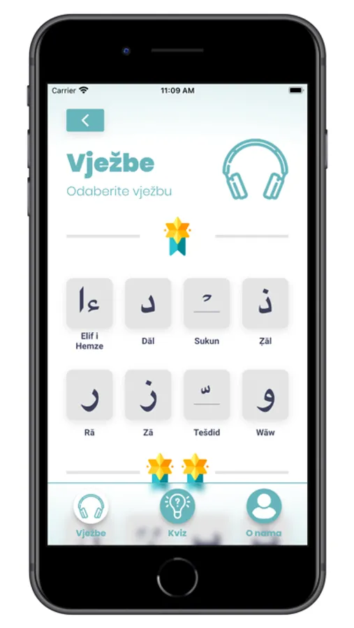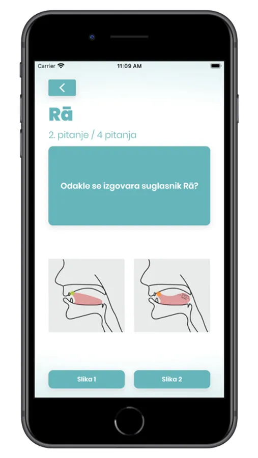 Ova app nudi audio-vizuelni prikaz vježbi i provjere znanja (Kviz).