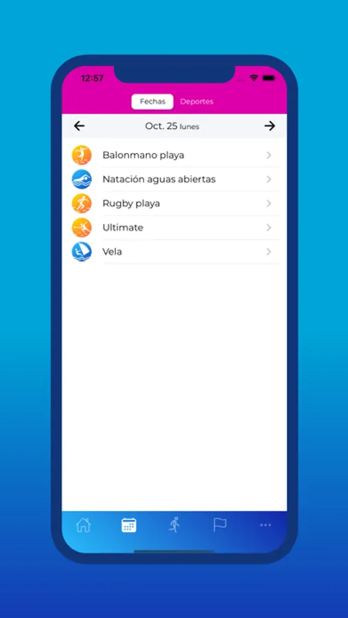 Calendario deportivo en donde podrás verificar fechas, horas y escenarios de las competencias de cada disciplina deportiva