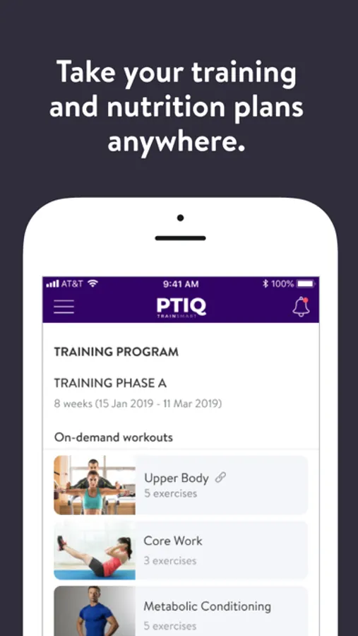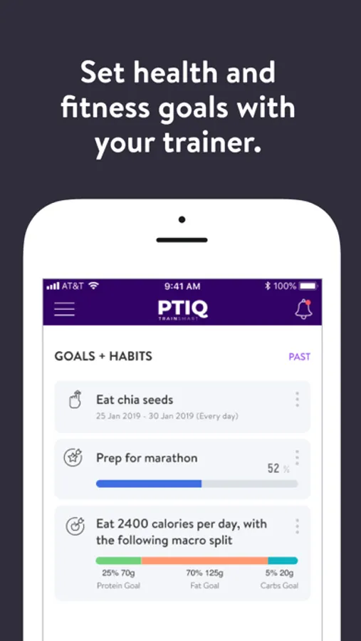 With the PTIQ App, you can start tracking your workouts and meals, measuring results, and achieving your fitness goals, all with the help of your personal trainer.