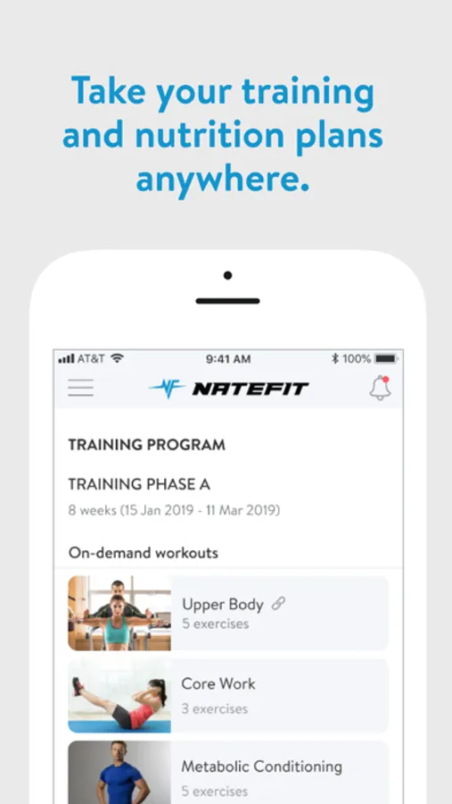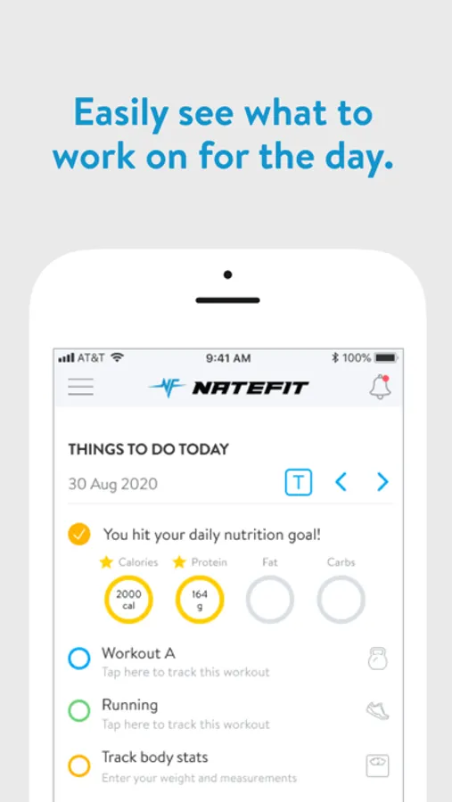 With the NATEFIT App, you can start tracking your workouts and meals, measuring results, and achieving your fitness goals, all with the help of your personal trainer.