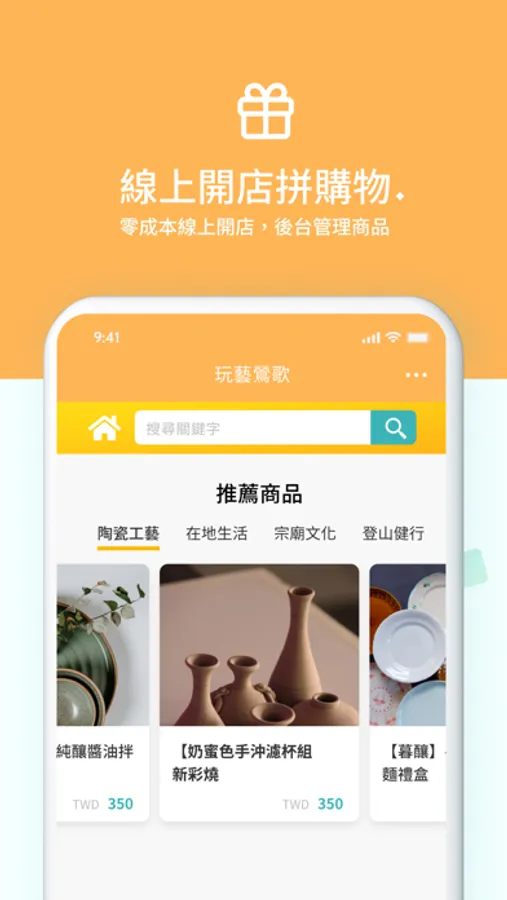聚焦文創與觀光,把在鶯歌附近的商家整合成一個叫做『玩藝鶯歌_MIY親子共創文化聚落』,商家分類有「陶瓷工藝」、「在地生活」、「宗廟文化」及「文創藝術家」