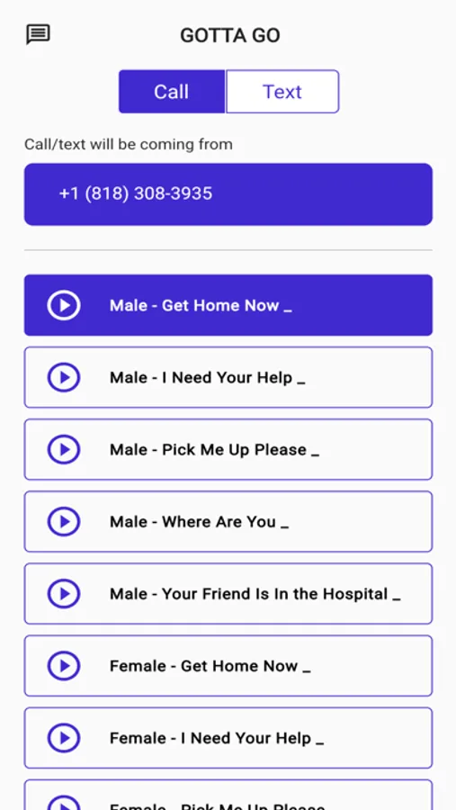 This app was made as an inside joke between two friends. Trying to get out of a date, meeting, or anything? Just select the sound and have it call you at a specific time and get out of uncomfortable situations!
