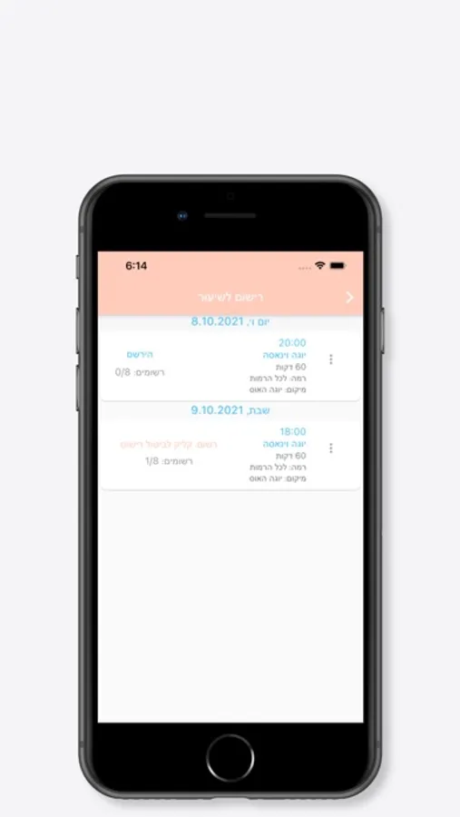 - כניסה לרשימת המתנה במידה והשיעור מלא.