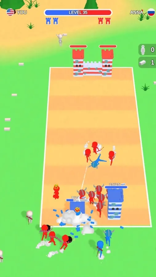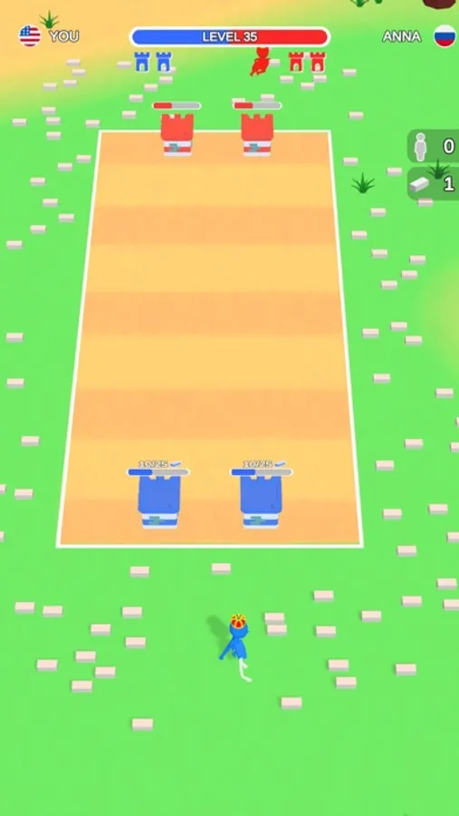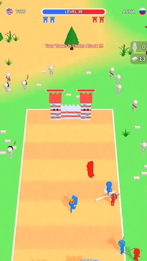 Collect bricks to strengthen your towers, collect warriors to defense your tower and destroy the enemy's tower.