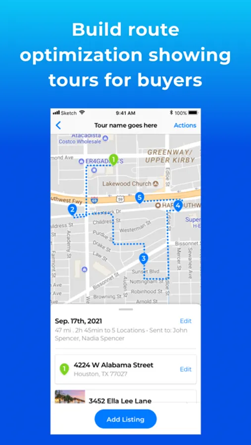 •Build route optimization showing tours for buyers
