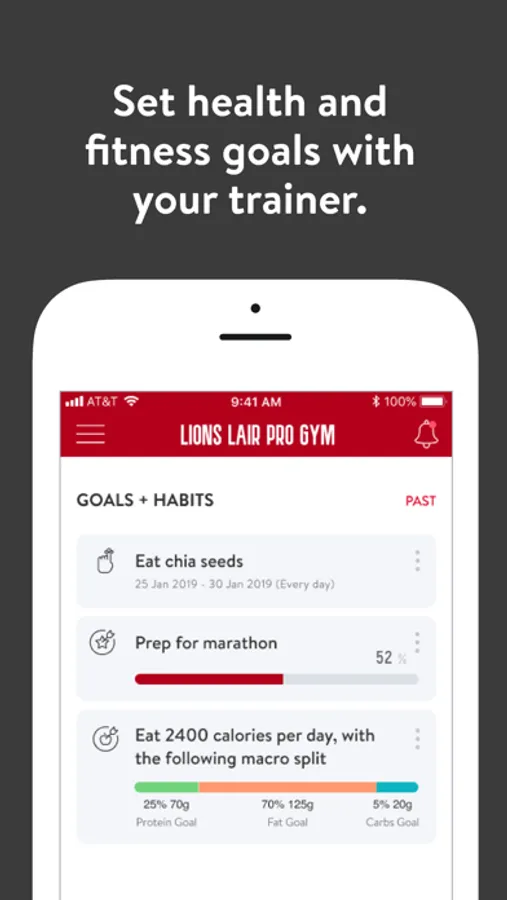 With the Lions Lair Pro Gym App, you can start tracking your workouts and meals, measuring results, and achieving your fitness goals, all with the help of your personal trainer.