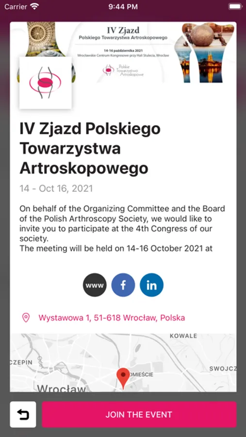 IV Zjazd Polskiego Towarzystwa Artroskopowego odbędzie się w dniach 14-16.10.2021 r. we Wrocławskim Centrum Kongresowym przy Hali Stulecia. Jak zawsze zapewnimy Państwu wykłady na najwyższym światowym poziomie dotyczące zarówno klasycznych jak też innowacyjnych zagadnień artroskopii. Przygotowaliśmy dla Was cykl praktycznych prezentacji dotyczących standardowych procedur i technik chirurgicznych. Więcej szczegółów na stronie: www.zjazd.ptartro.pl.