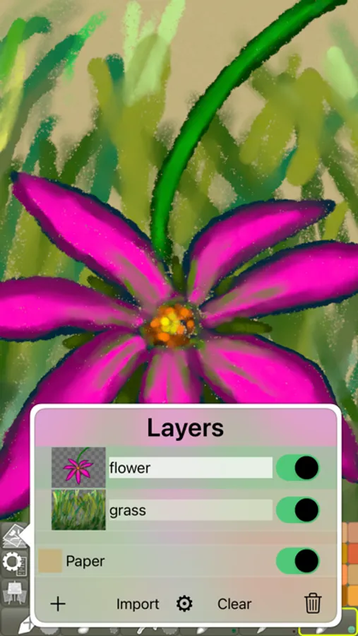 When creating a new picture, a unique, non-repeating paper texture is generated that will interact in real-time with the live-calculated strokes you paint.