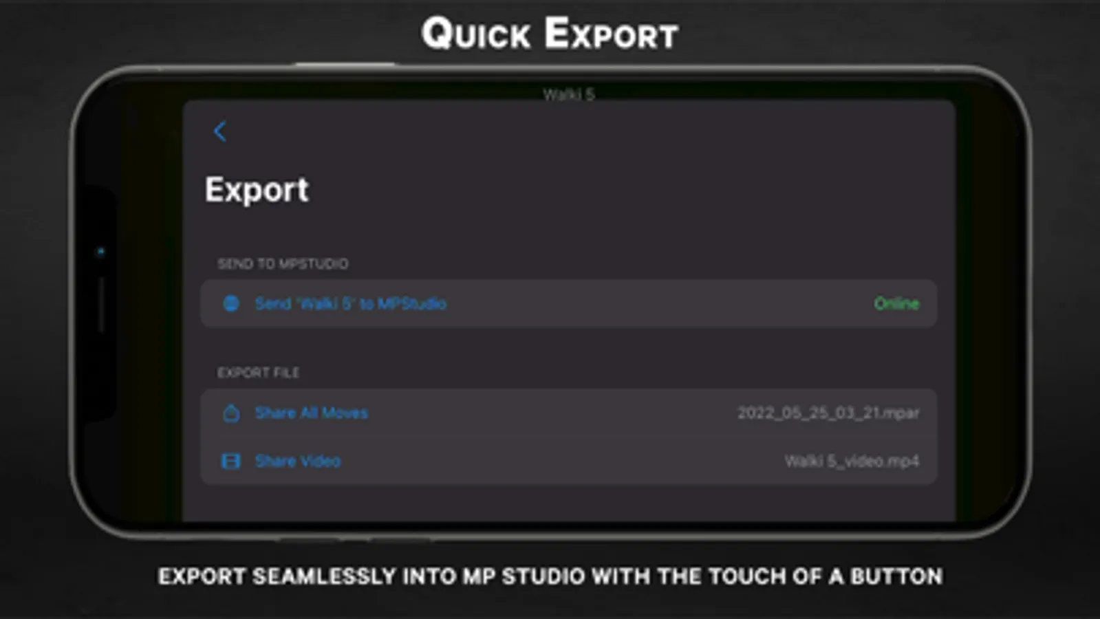 Export: Export your move to MP Studio software to run directly on the robot after the move is exported. You can also export a clip to share via Imessage or email to your clients or as a reference of the shot.