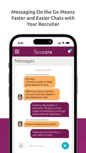 FlexCare 360 enables you to direct-message with your recruiter, enhancing the flow of communication and alleviating the need for tracking messaging through various channels. Also, manage your to-do's in FlexCare 360's Tasks with real-time messaging notifications from your recruiter!
