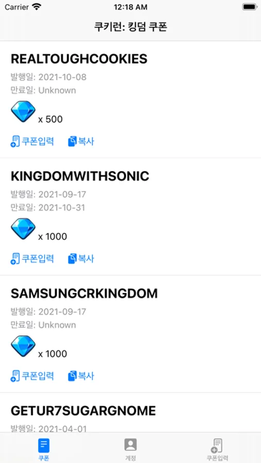 쿠킹덤 쿠폰 정보를 보여주고 앱에서 쿠폰을 등록 할 수 있습니다.