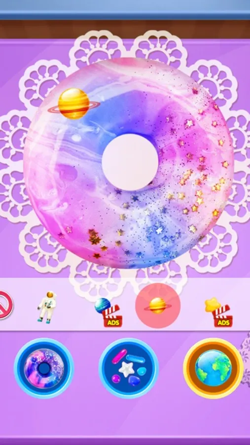 Galaxy Donut provides tons of galaxy colors and toppings for you to design the fashionable sweet desserts.