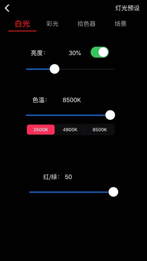 这是一款基于蓝牙mesh的补光灯应用,有单独控制功能,群组控制功能,全部控制功能