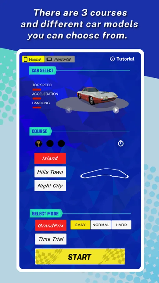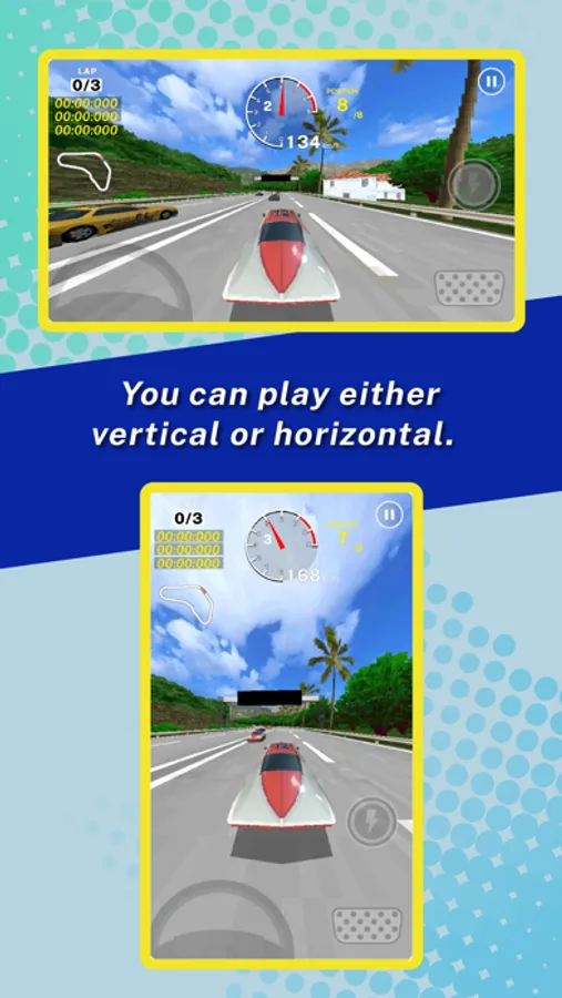 You can switch the racing screen either vertical or horizontal.