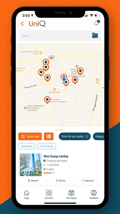 Бизнесийн байгууллага болон үйлчилгээнүүдийн нэгдсэн санг бүрдүүлж байна. Гар утаснаасаа өөрт ойрхон байрлах болон бүх төрлийн хэрэгцээт утгаар хайх боломжтой боллоо.