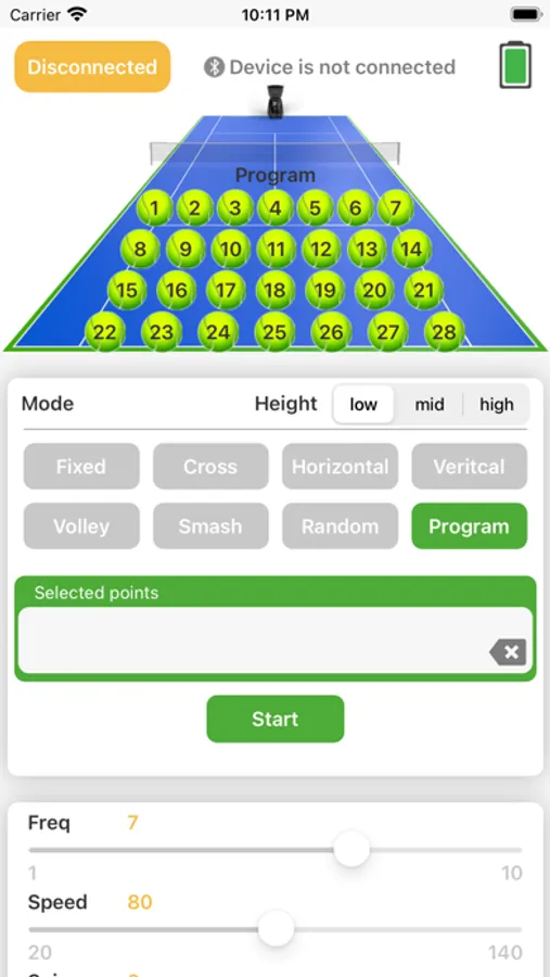 Pushang Tennis APP is a tool APP for Pushang intelligent tennis ball machine. Using this APP, you can select one-touch switching of various modes of the ball machine through the Bluetooth connection, and you can set the direction of the ball, the frequency of the ball, the speed of the ball and the degree of rotation.