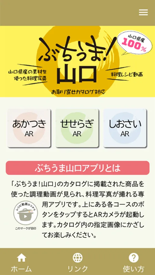 本アプリは、山口県のおいしいものを掲載したギフトカタログ『ぶちうま!山口』専用アプリです。
