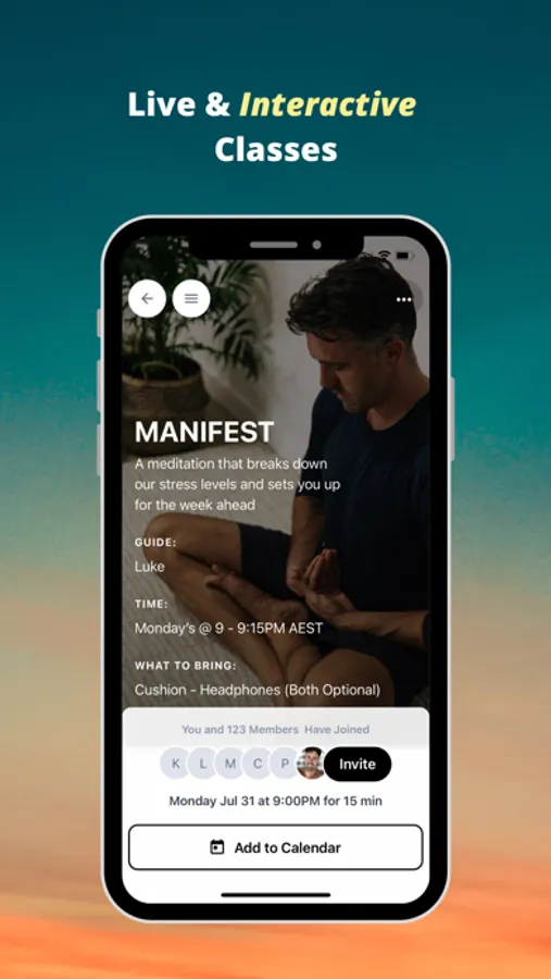 You'll be able to book, experience and interact with our live-streamed meditation classes run throughout every week. Led by some of Australia's favourite meditation teachers! You can ask questions, chat with other members and most of all, immerse yourself in these personalised and powerful meditation experiences.