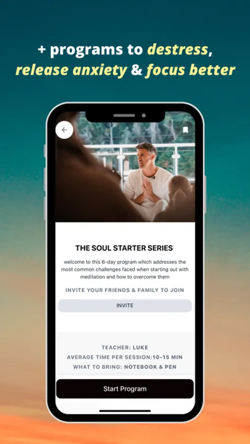 We do this through our live, guided meditation classes led by some of Australia's top meditation teachers. You also receive our Daily Mindful Moments, which have been designed to make it easy for you to learn and live mindfully and lastly, full access to the Soul Library! A place staked full of guided meditations, breathing exercises, mindfulness tips, tricks, articles. Plus some soothing sounds of nature to listen to at any time. Everything you need to squeeze the most out of life!