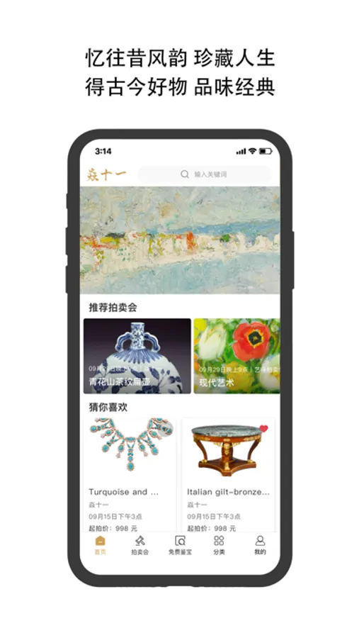 1、【跨境拍卖,收藏无界】汇集全球优质拍卖行和优选拍卖会,足不出户即可全球寻宝。