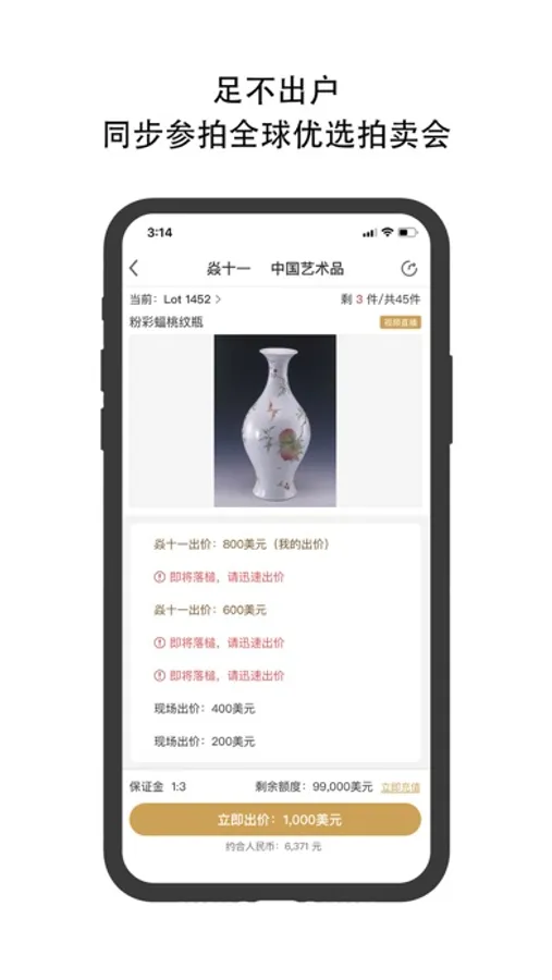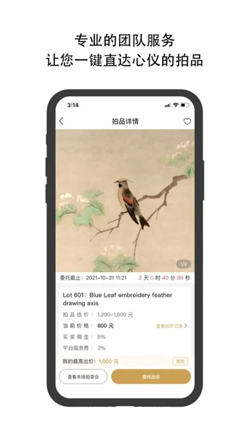 4、【优质拍行,一触即达】具有影响力的优质拍卖行和权威艺术机构签约入驻,提供有品质保障的拍卖会。
