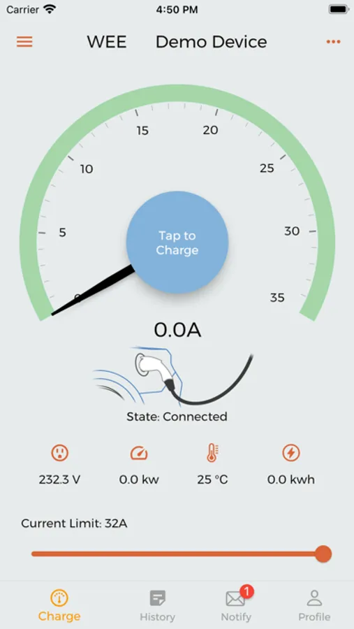 WE E-Charge is a mobile app for managing specified smart ev charge point.We E-charge connects to the charging point through wifi to achieve the purpose of data interaction. This app has three main functions of charging start-stop control of charging point and charging method settings, which are convenient to remotely see the status of charging point and real-time data of charging process, and has other functions such as viewing historical charging records, charging order statistics, etc.