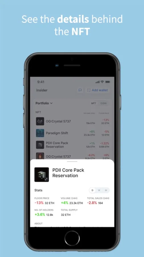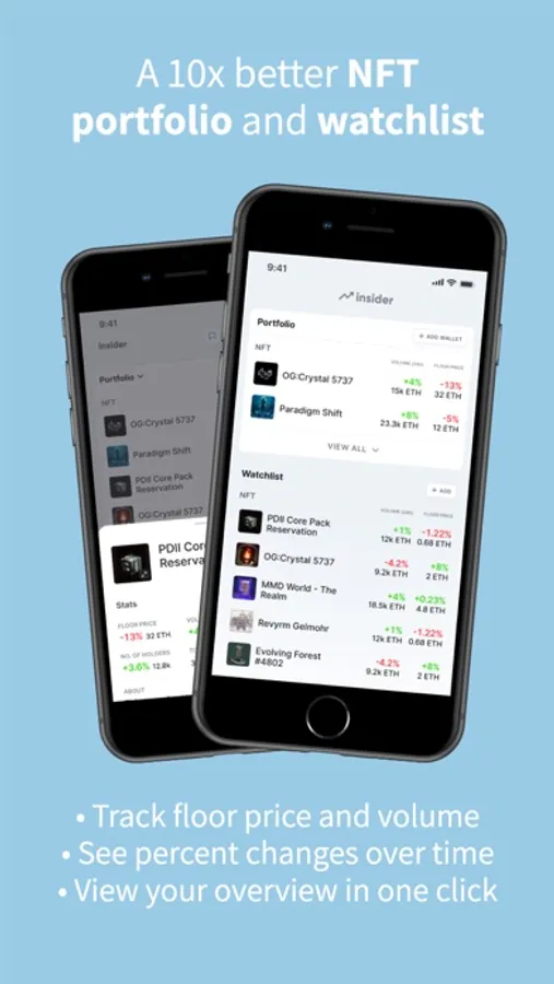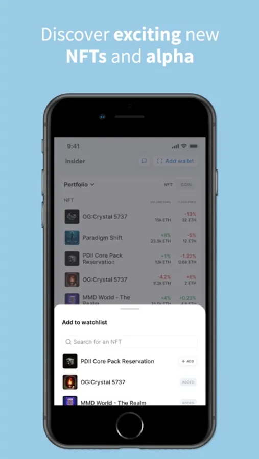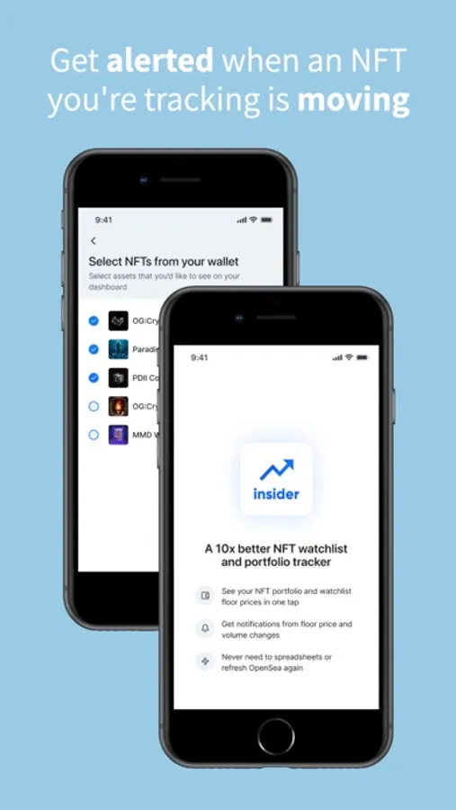 Insider keeps track of everything for you, and will send you alerts when floor prices or volumes have moved significantly on NFTs in your wallet or watchlist.