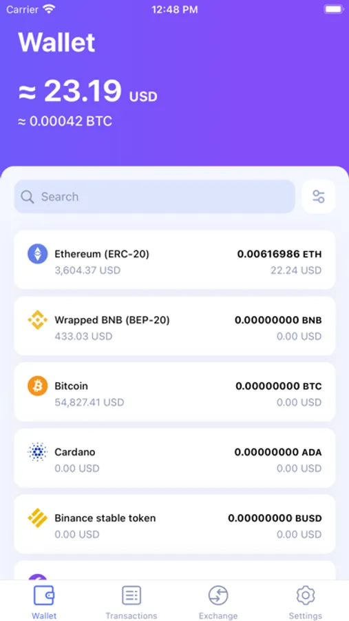 Receive, send, store and exchange Bitcoin, Ethereum, Tron, BNB, Cardano, Tether and