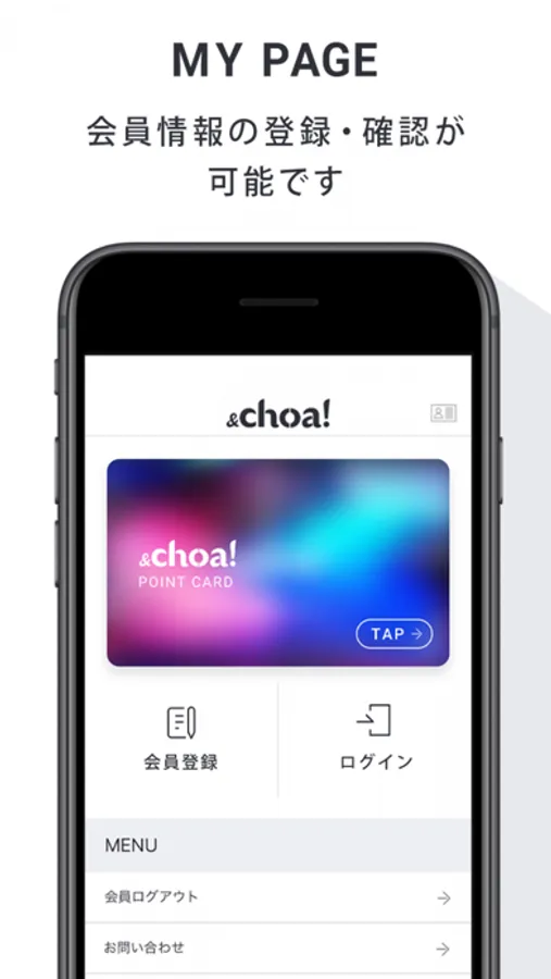 商品紹介はもちろん、会員証(ポイントカード)や店舗情報など、&choa!(アンド・チョア)の最新情報が詰まったアプリです!