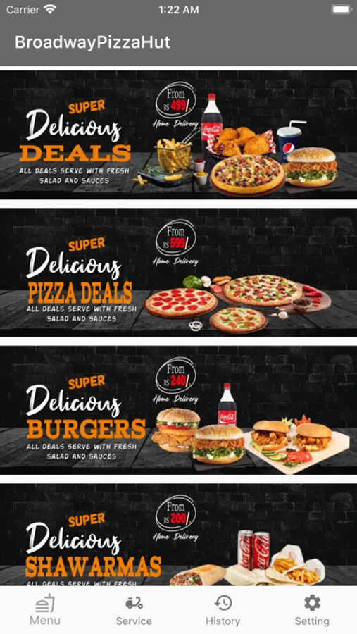 We offer a variety of food such as , pizzas, burgers, kebabs and much more.