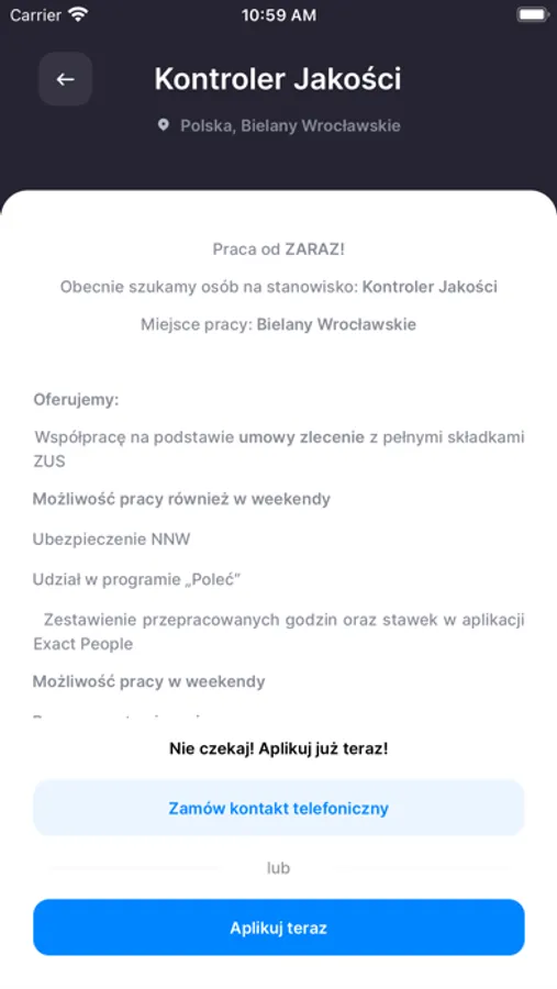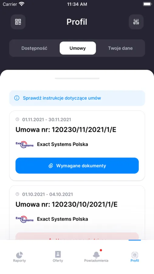 Dzięki aplikacji jesteś informowany o szczegółach twojej umowy, otrzymujesz wiadomości od koordynatorów i działu kadr.