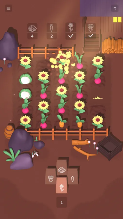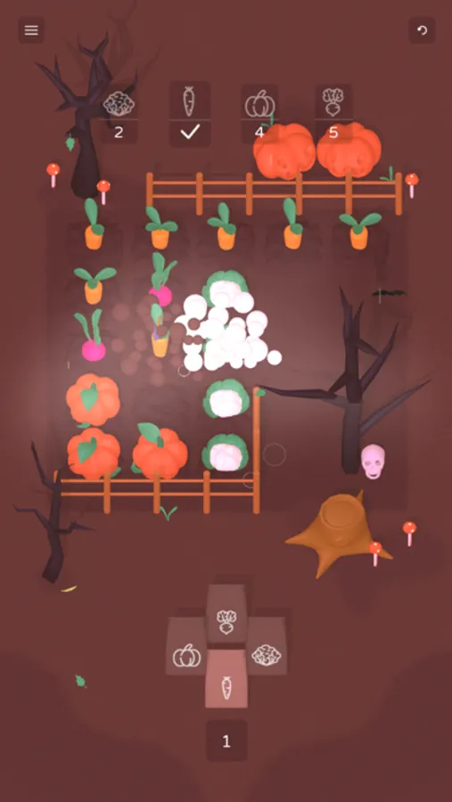 You love cooking delicious meals, but they require ingredients! The garden provides very productive soil that can be used for growing various crops. The space is limited and each vegetable has its own planting rules, so be sure to use the correct seed and plant with care. Each level represents a list of ingredients required to cook a meal for you and the family members.