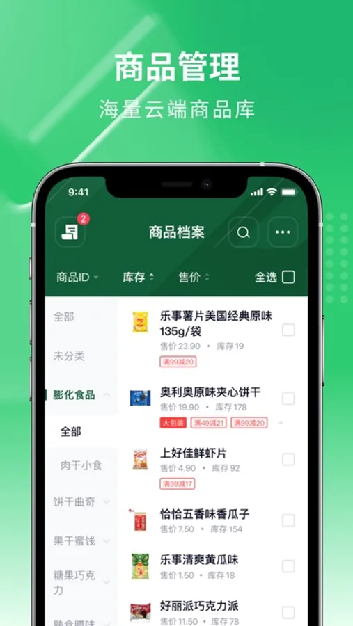 百万云库商品资料,资料录入更便捷,还有大小包装自由转换、智能补货功能,让商品管理更轻松;