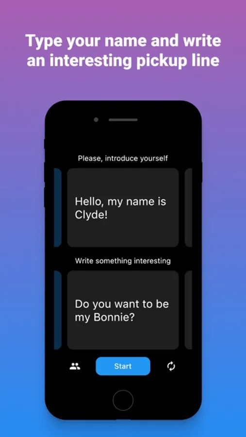 - create your own pickup lines or use predefined;