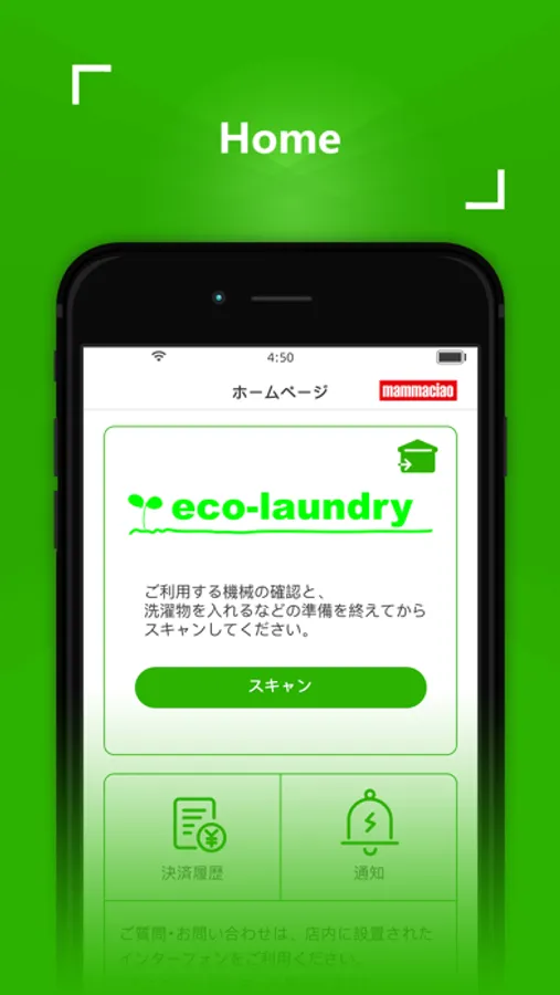 Mammaciaoをご利用のお客様は、このアプリを使用すると、キャッシュレス端末が設置されている洗濯機でお支払いが可能になります。