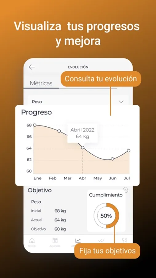 Con esta app recibe tus pautas de nutrición al instante, reserva cita para videollamadas cuando quieras, registra tu actividad y progreso a través de la app.