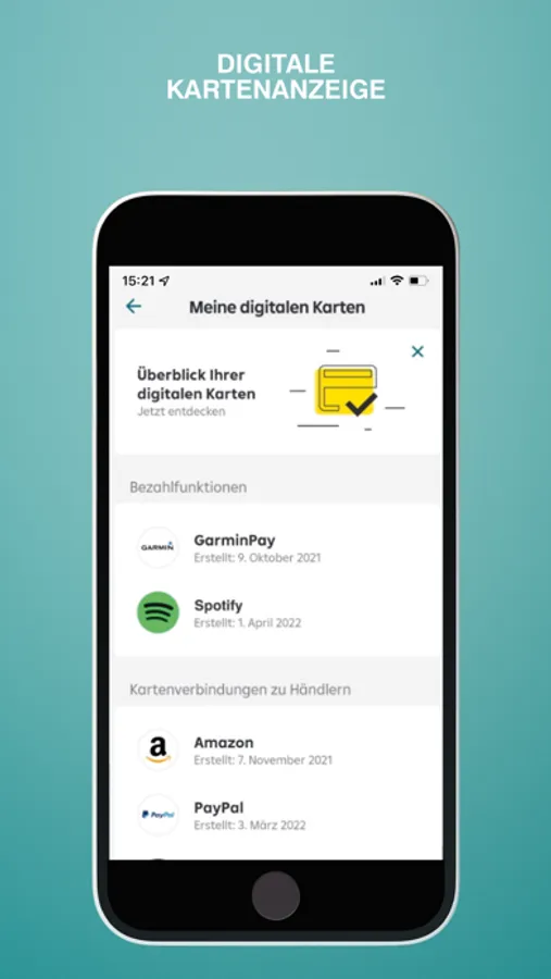 RaiPay bietet Ihnen eine einfache und klare Übersicht all Ihrer digitalen Karten in Bezahlwallets und Verbindungen zu Online-Händlern oder Abo-Diensten. Diese können direkt in der App angezeigt werden.