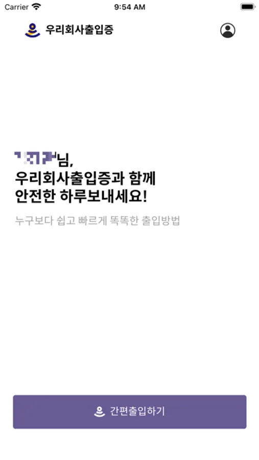 2. 메인 화면에서 간편출입하기 버튼을 선택합니다.